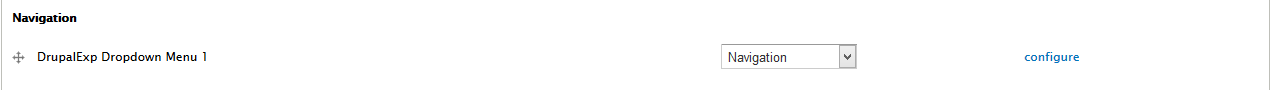 In the block setting page, edit "DrupalExp Dropdown Menu [n]" then select the menu block to build the dropdown menu.
