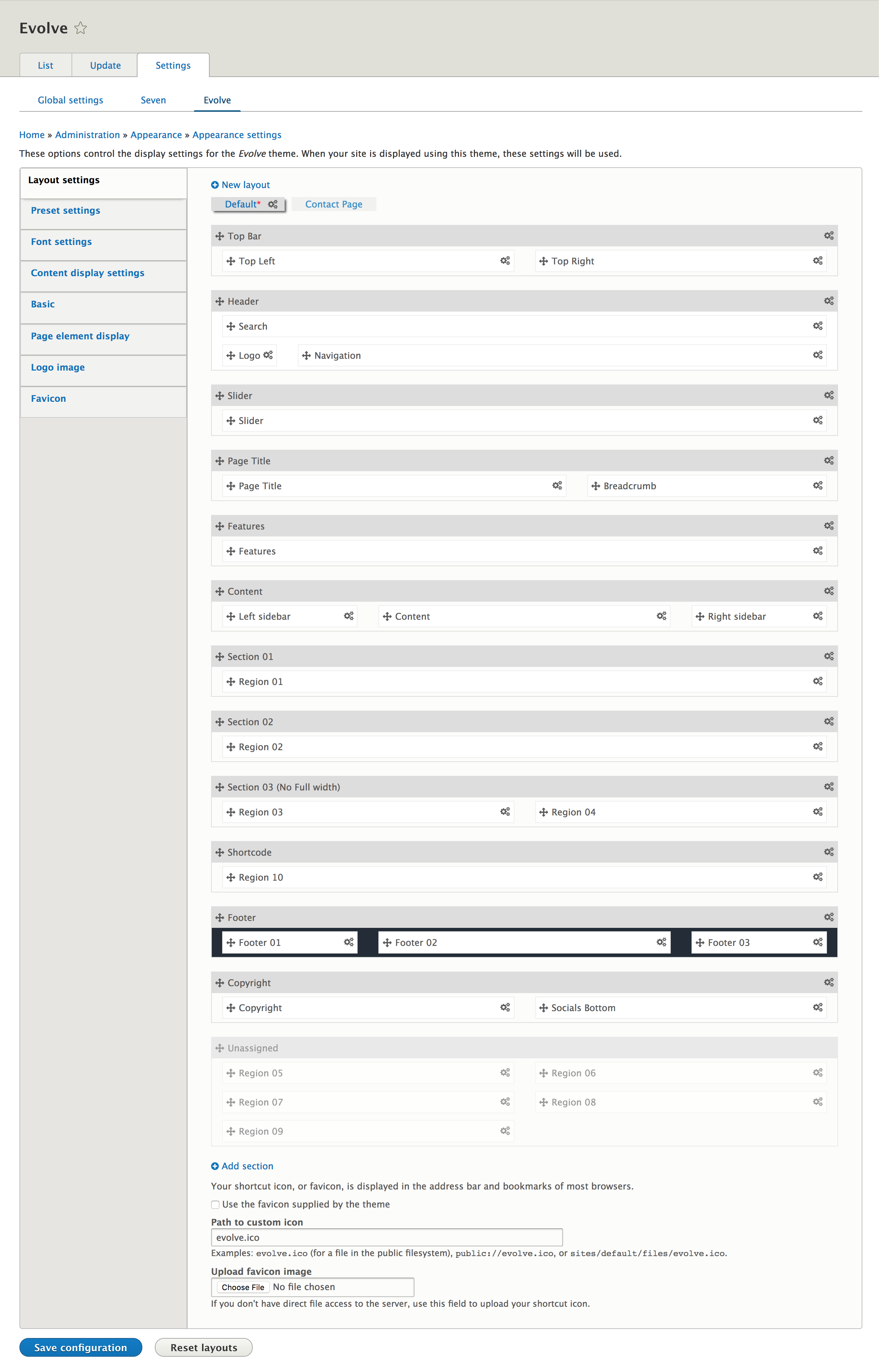 Using this framework you can move to change the order of sections and regions, set the widths of individual block regions or remove from the site layout.