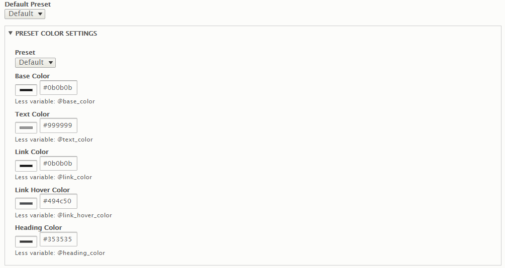 The Preset settings provide the functionality to create your own colors so that you can have full control over the color scheme of your website using a hex code.